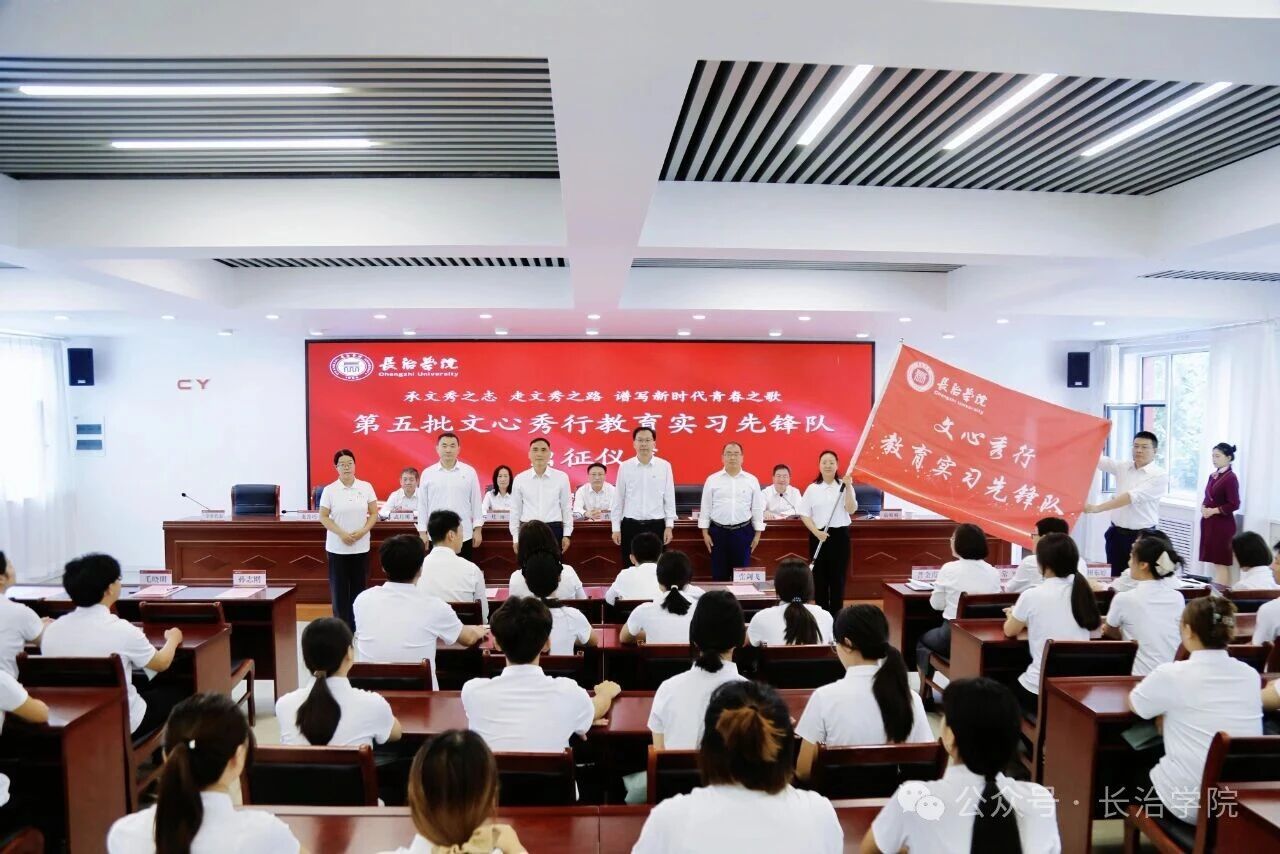 9月12日上午,我校举行第五批文心秀行教育实习先锋队出征仪式。校领导曹景川、史晓东、焦雨、王志军、武月明出席仪式。文心秀行教育实习先锋队五批全体指导教师孙志刚、毛晓明、李拉利、袁爽爽、龙晋巧,党委办公室、党委组织部、教务部、学生工作部、校团委等部门相关负责人,第四批先锋队学生代表及第五批40名先锋队成员参会。王志军主持出征仪式。