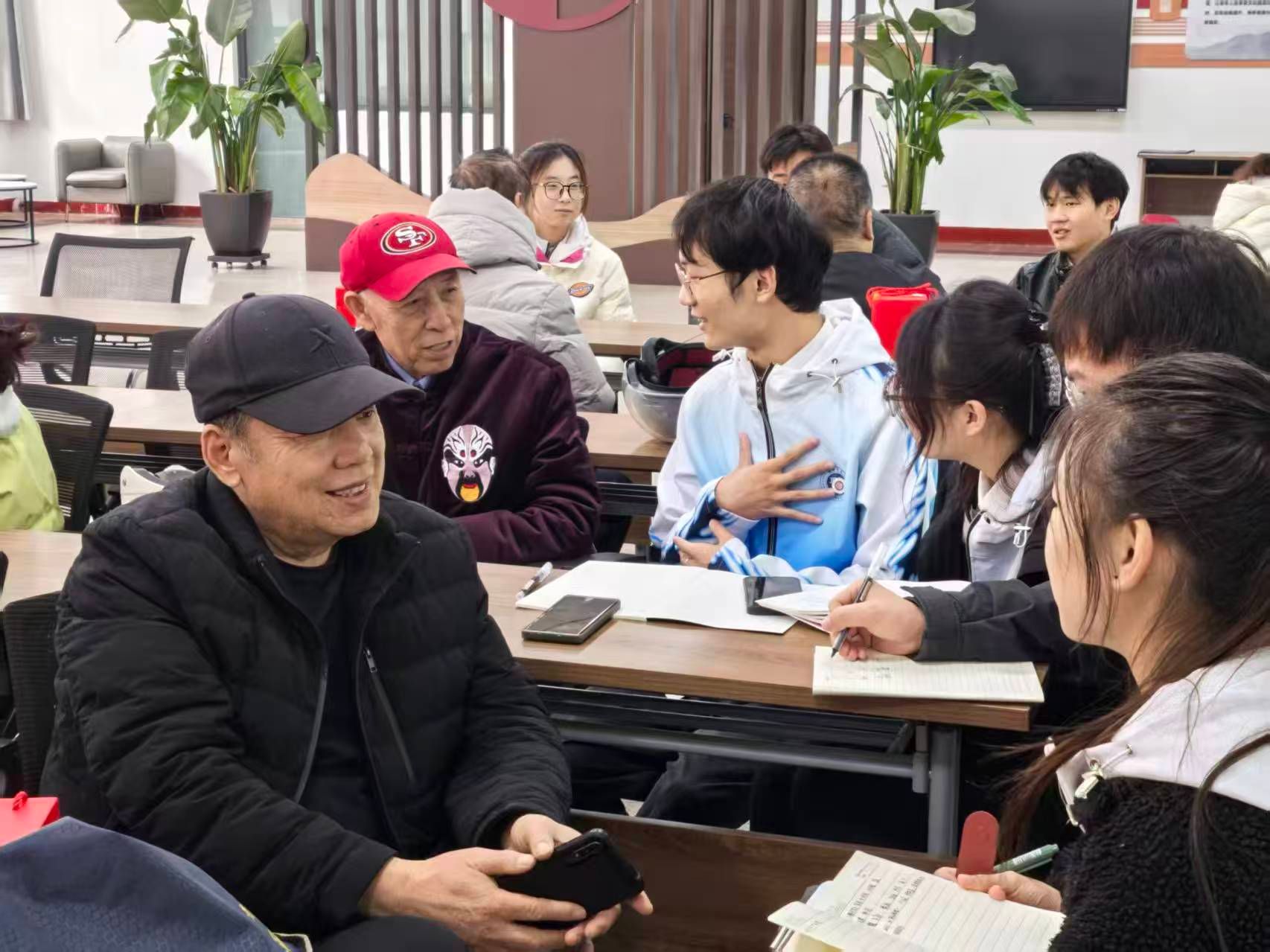 长治市太岳乡音艺术团是由市区退休干部、在职员工、音乐舞蹈爱好者及沁源老乡会组成的群众性业余文艺团体,平均年龄约60岁。在这个银龄群体的课堂里,“文心秀行:听您说说心里话”暖场环节为活动定下了温暖的基调。学生们团团围坐在老人身旁,依托提前设计好的提纲展开深度交流,长辈们在交流中用丰富的人生阅历为青年学子展开了一幅幅鲜活的人生画卷。同时,也向在场学子倾诉了智能手机基础操作等数字生活需求问题,从社区服务的期望到子女陪伴的思念,娓娓道来、其乐融融。